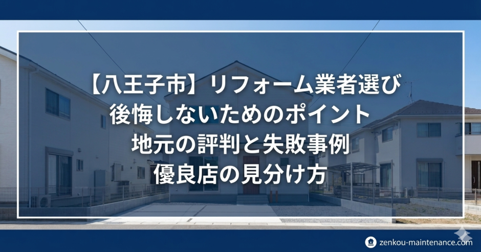 この記事を読めば、八王子市で「本当に信頼できる優良店」を見極める基準が明確になり、損をしないリフォームへの第一歩が踏み出せるはずです。