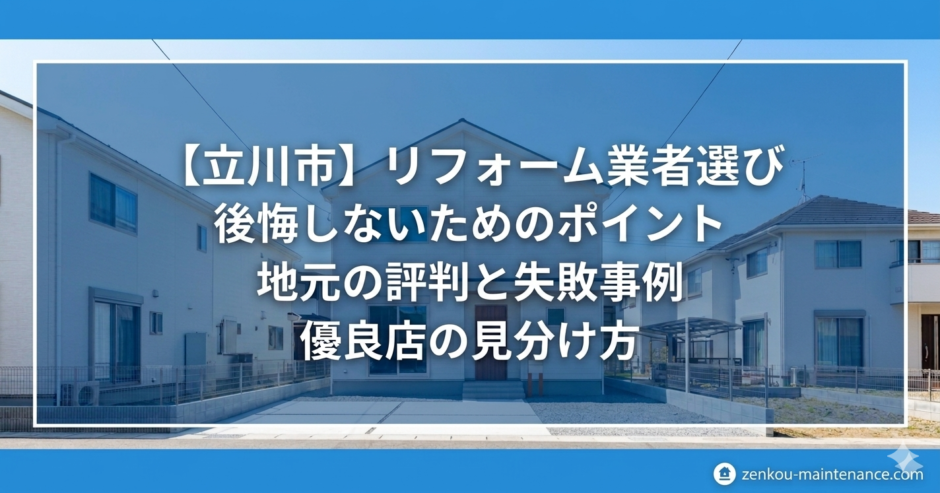 「立川市 リフォーム おすすめ」で検索した口コミを鵜呑みにし、実際の施工実績(特に立川特有の気候への配慮)を確認せずに契約してしまった。